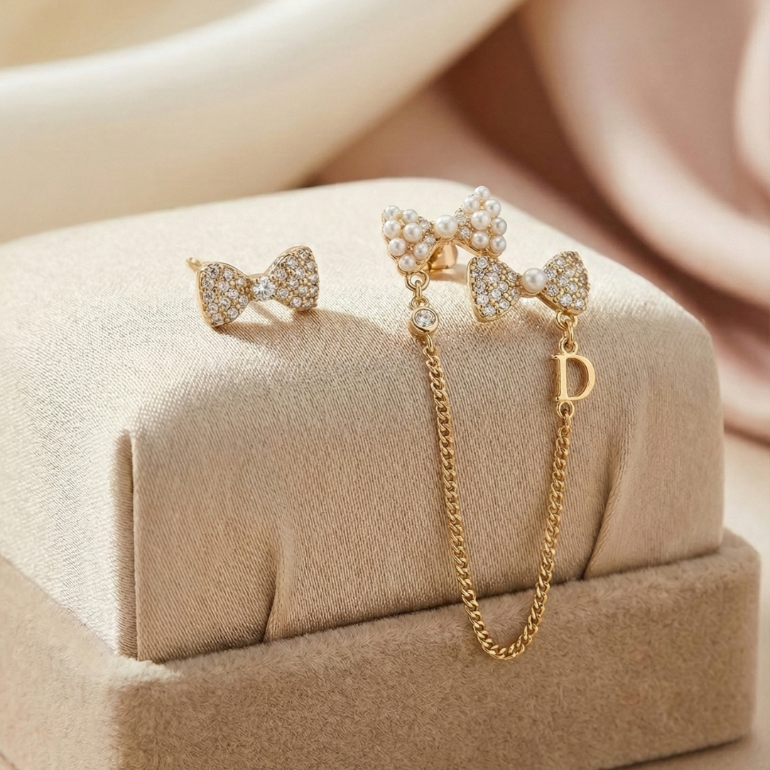 - Charming Asymmetrical Set: Features one classic pavé bow stud and one elaborate double-bow drop, creating a modern, curated look.
